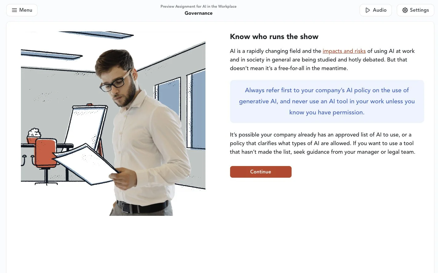 Audio lessonThe same information, a different way to learn. On the left, the course as it normally appears (click the image to review it in full), on the right, an audio version built for listening!