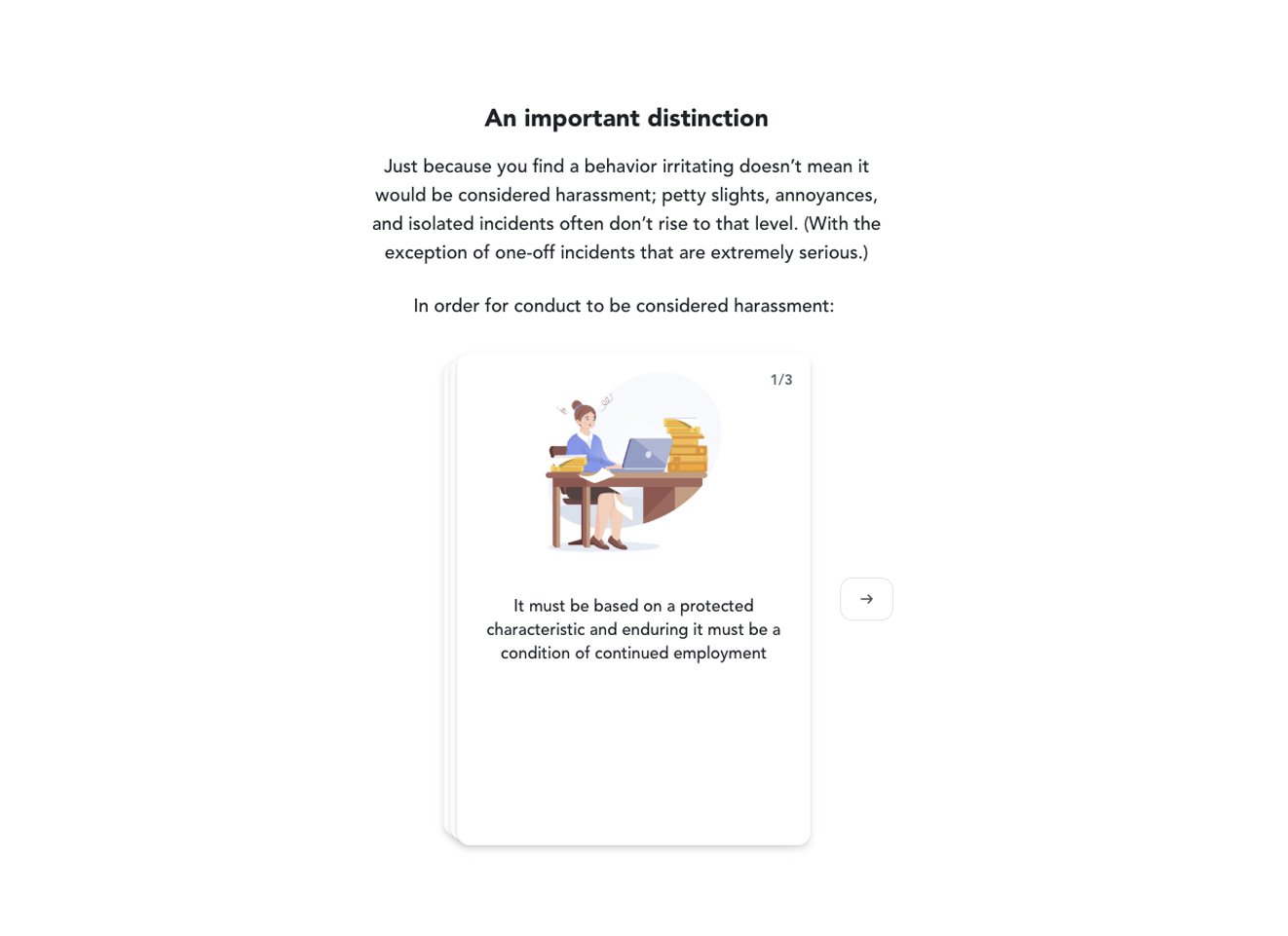 This interactive elements allows employees to flip through a stack of cards that quickly communicate key terms or topics.