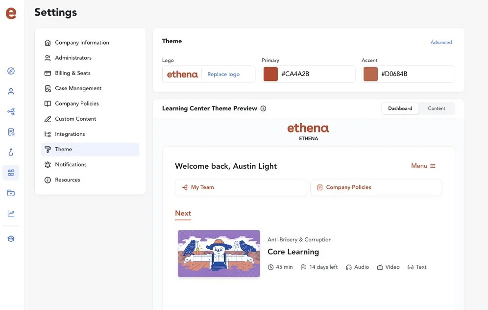 A simple change can have a big impact! Easily customize your training to look like your company with the right colors, words, imagery, and more.